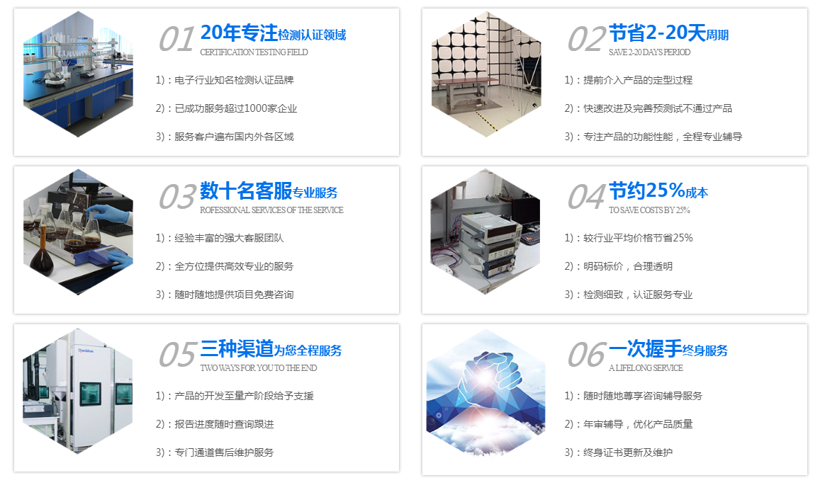 ? ? 東莞市中測威檢測技術服務有限公司總部位于東莞松山湖科技產業園區,是一家在全面領域開展業務的大型綜合性第三方檢測認證平臺.公司配備有專業的化學測試中心,電氣安全測試中心、EMC電磁兼容測試中心、新能源電池檢測中心、RF無線射頻測試室、光電性能測試室、環境可靠性測試中心等.各實驗室均獲得各國家的相關資質授權,如CMA資質認定、中國合格評定國家認可委員會CNAS認可資質、美國實驗室認可協會A2LA資質認定、美國CPSC授權、TUV萊茵實驗室授權、ITS RTL實驗室授權等等,并與國家質檢中心部門保持長期深度的合作關系。 同時公司還提供產品的EMC設計與整改、國內外市場準入認證方案、企業標準、知識產權、企業管理體系輔導、檢測技能培訓、實驗室建設等“一站式”服務。